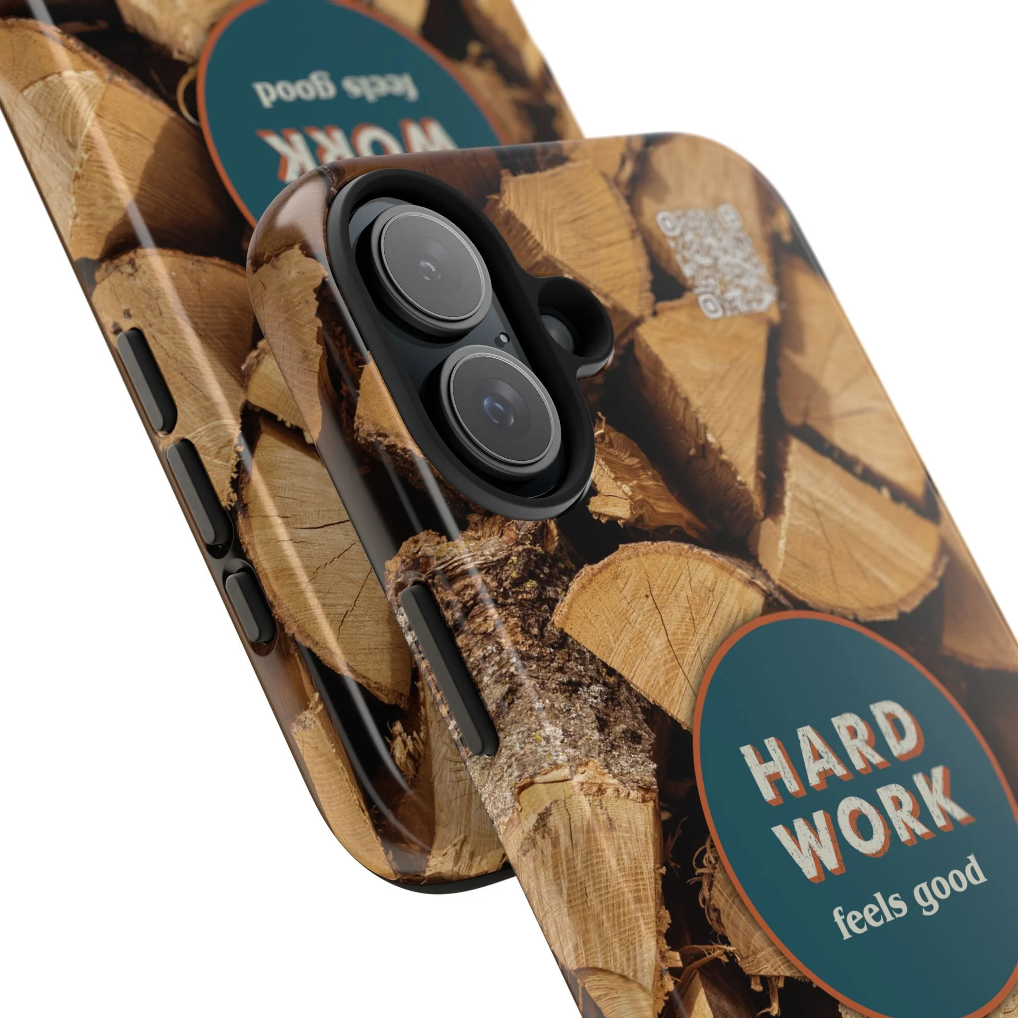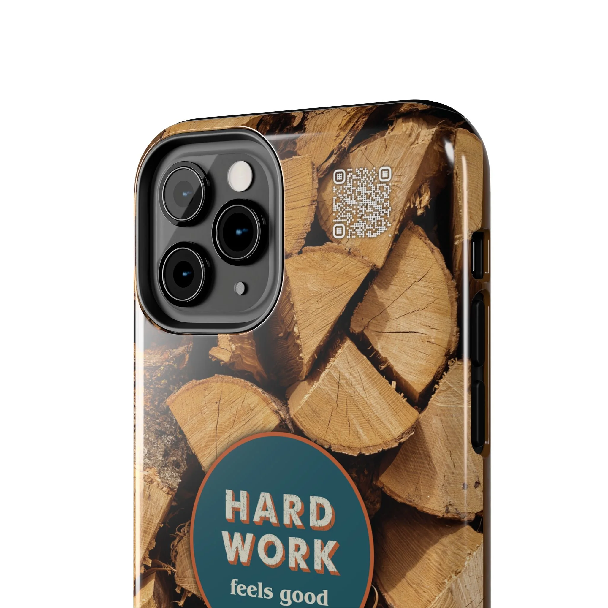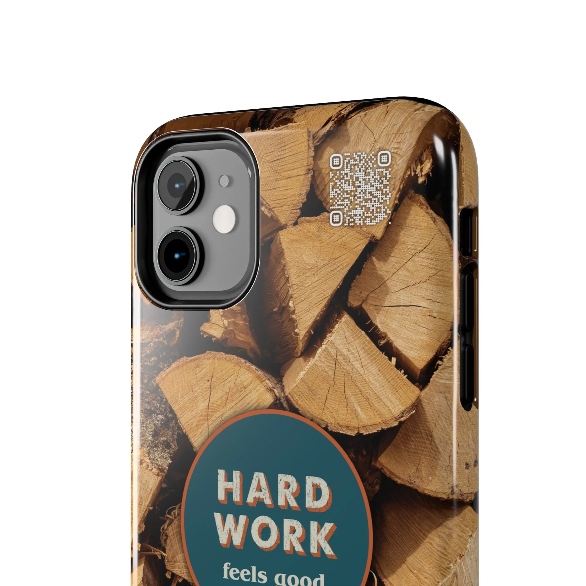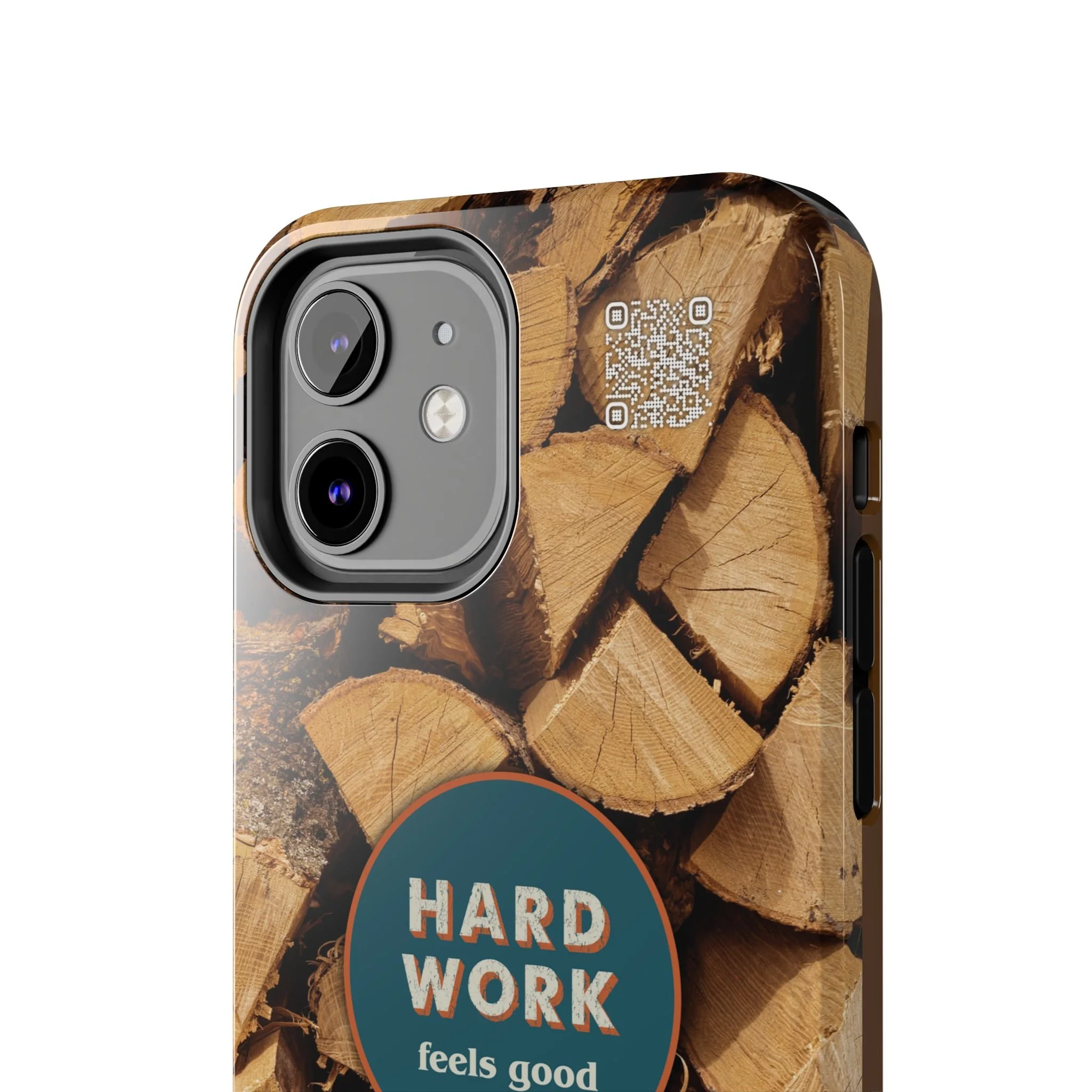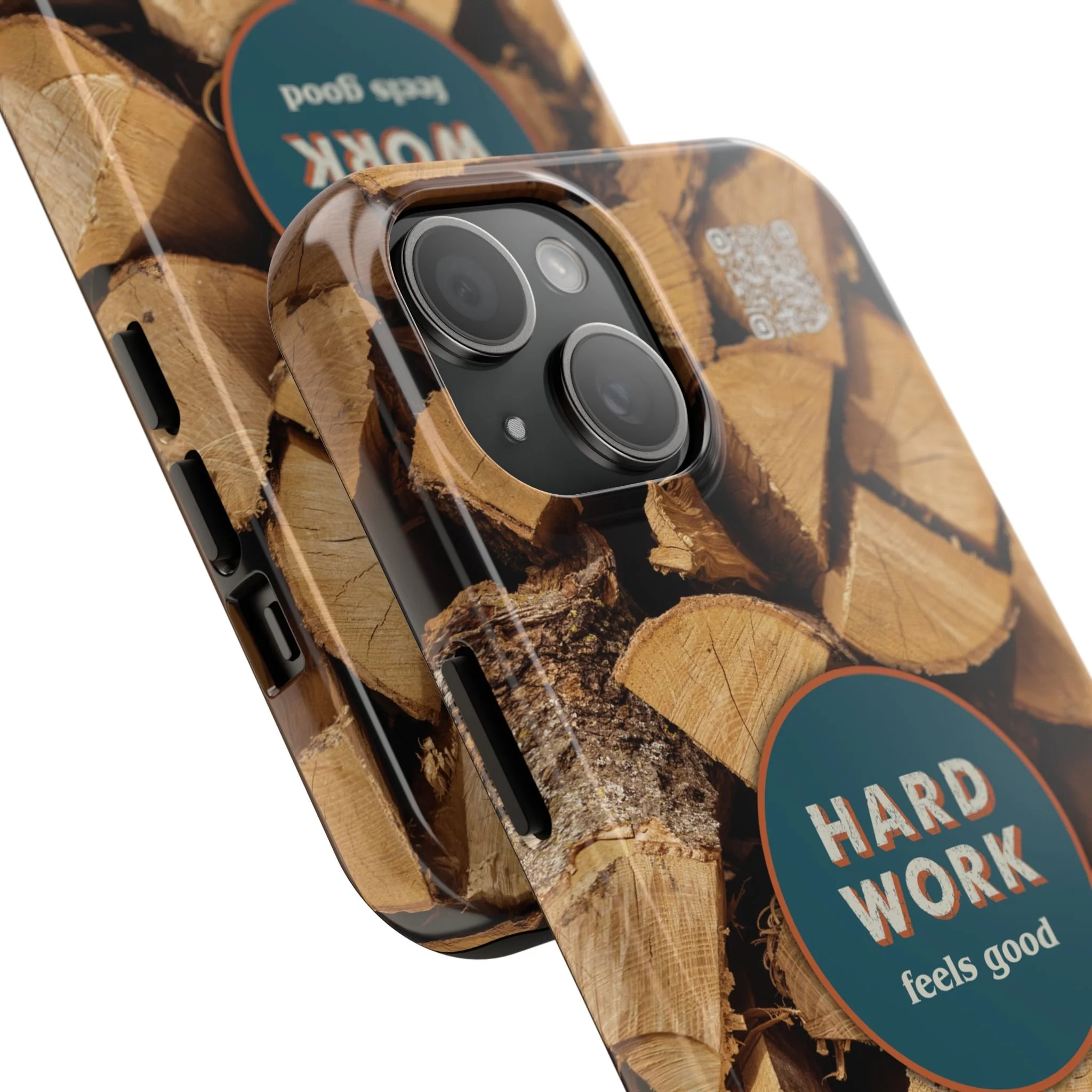 Split, stacked and seasoned wood, with a simple badge that says “HARD WORK feels good.” This phone case brings that same honest, outdoorsy energy to your pocket — a glossy, protective shell that looks like a cabin-side pile of firewood and feels rugged in daily use. Drop it, set it down on rough surfaces, carry it on workdays or weekend projects; the dual-layer construction and interior rubber liner stand between your device and bumps while the raised bezel helps guard the screen. The UV-resistant glossy print keeps the woodgrain deep and rich through seasons of sun and outdoor use. It’s made for people who take pride in getting things done and want their phone to reflect that quiet, steady grit.