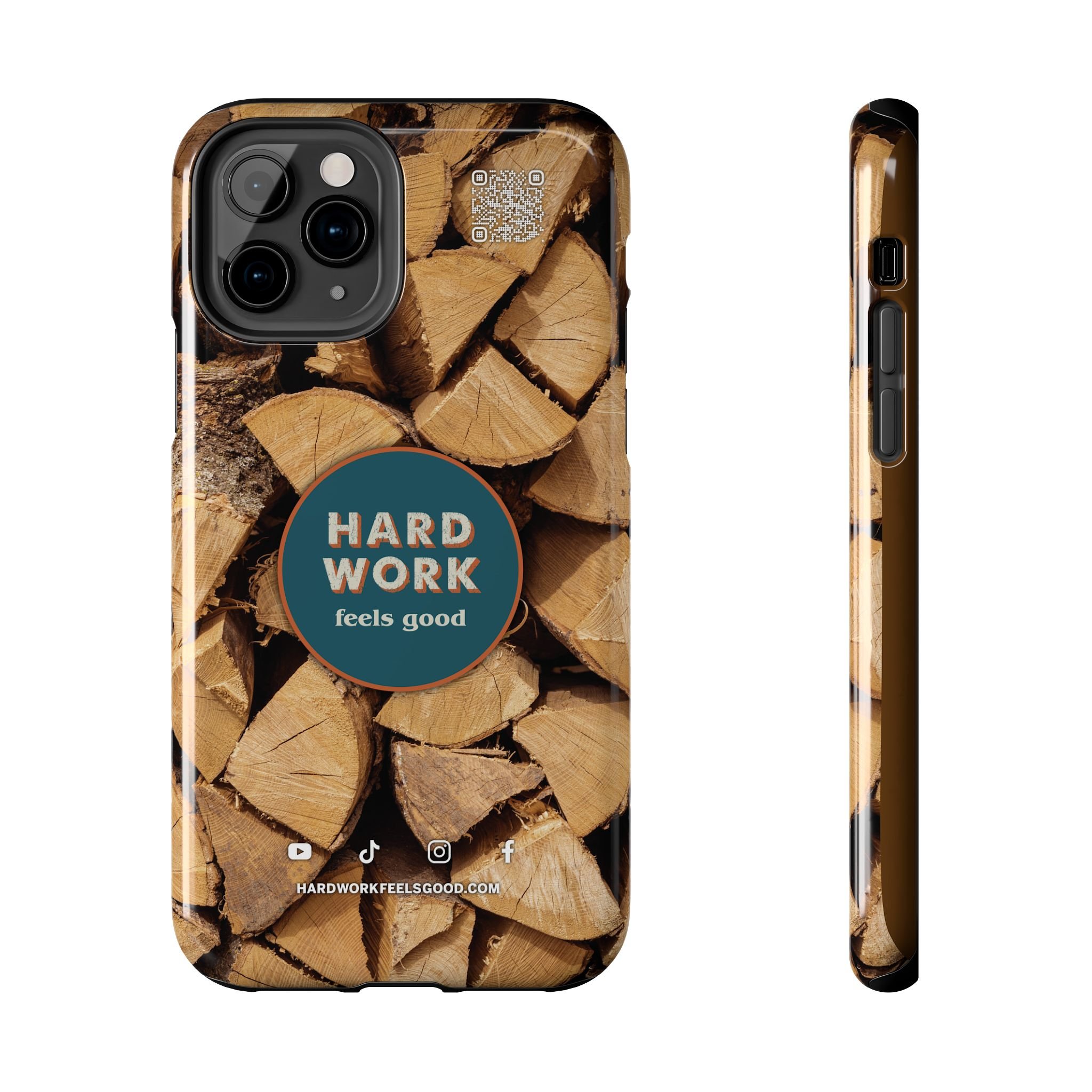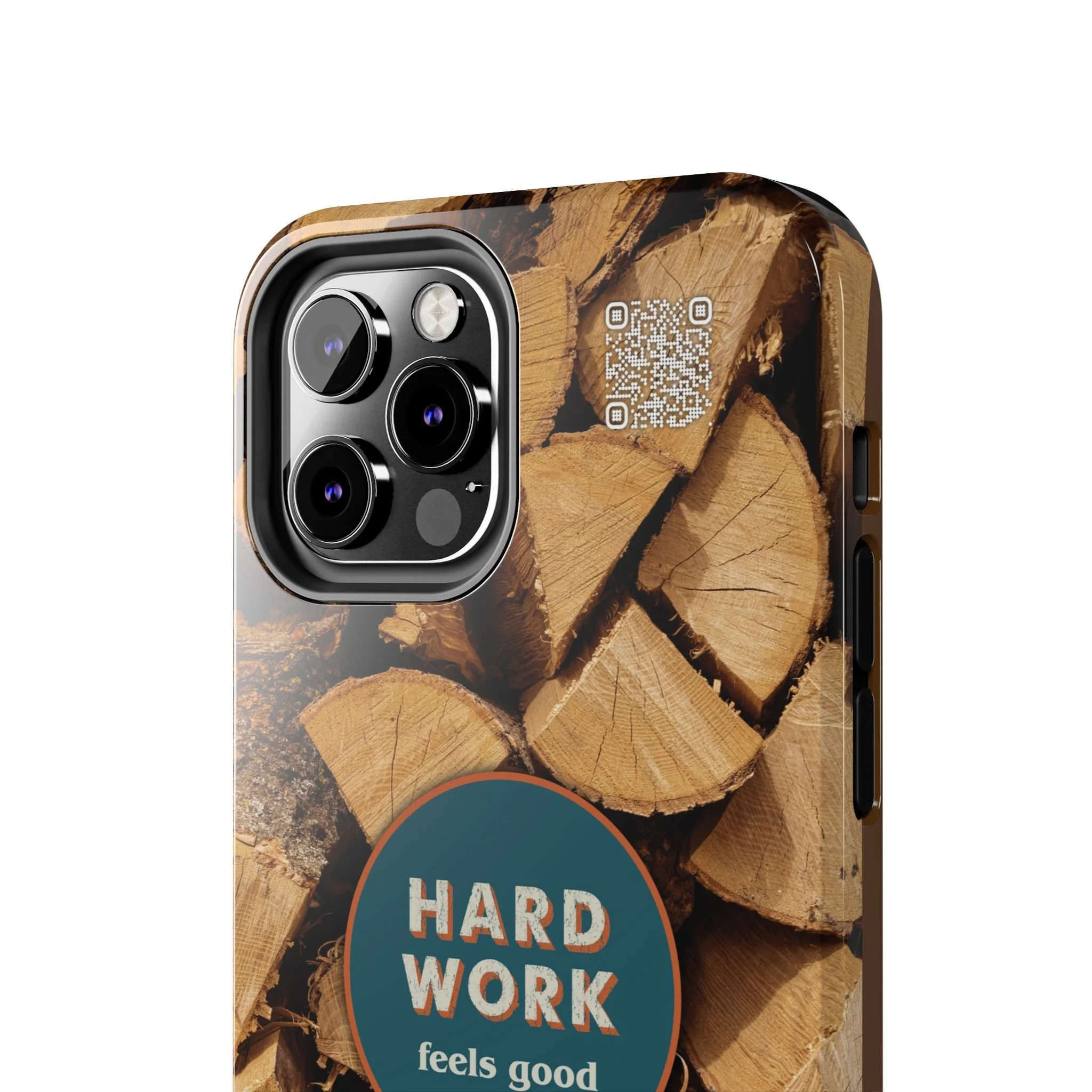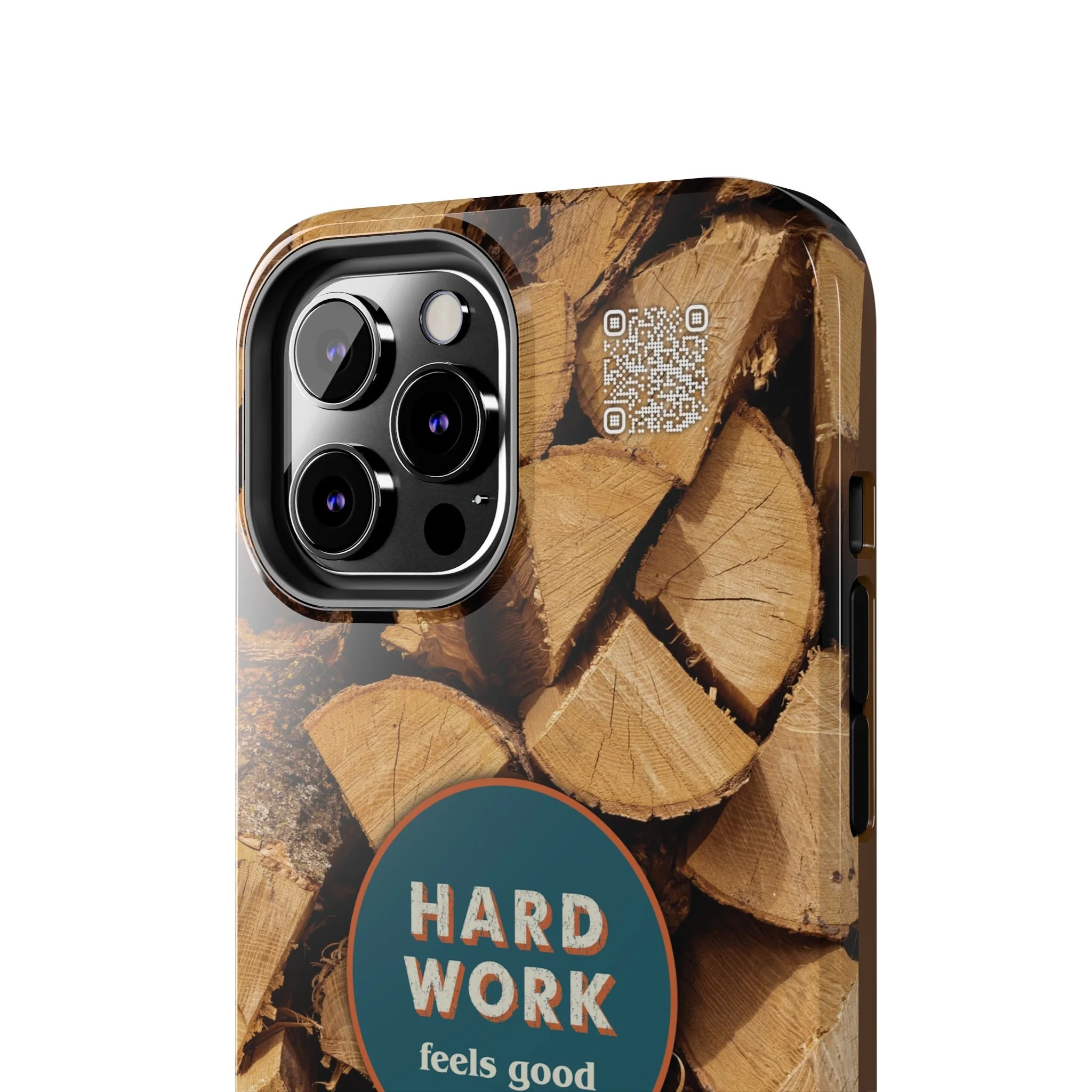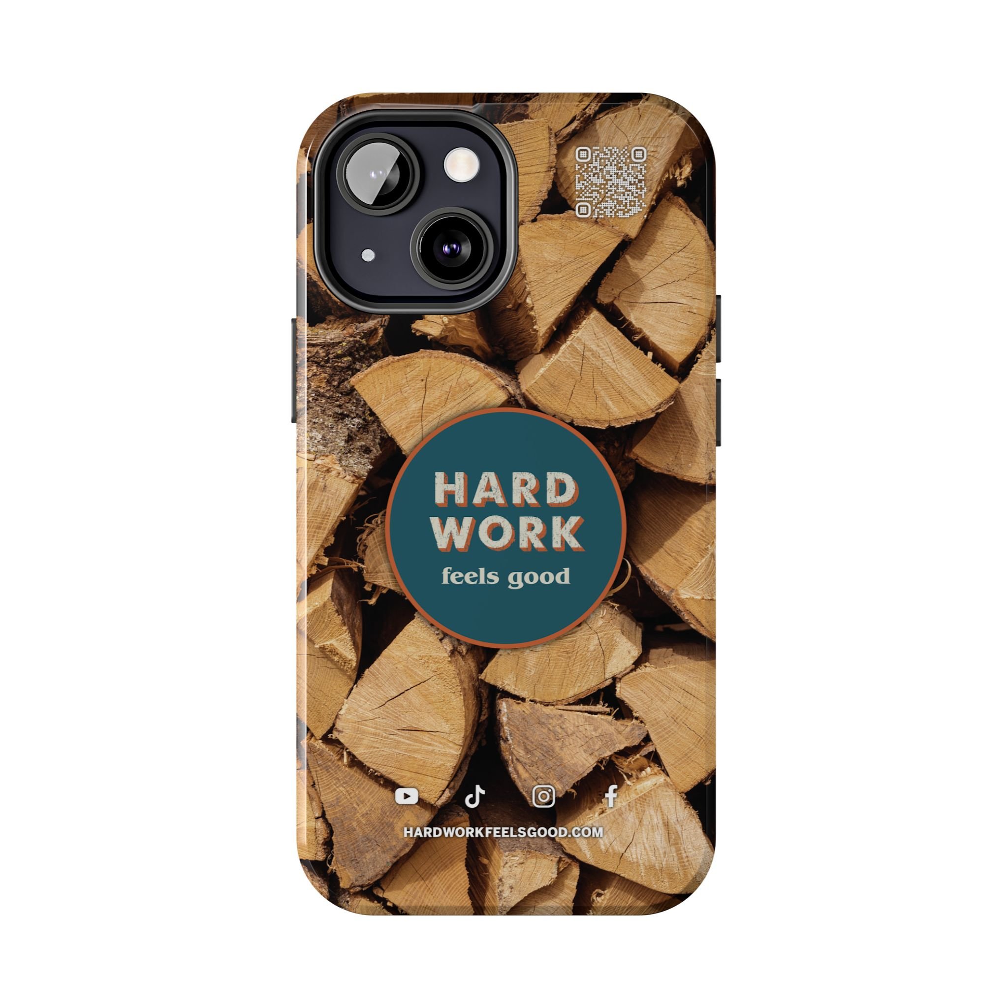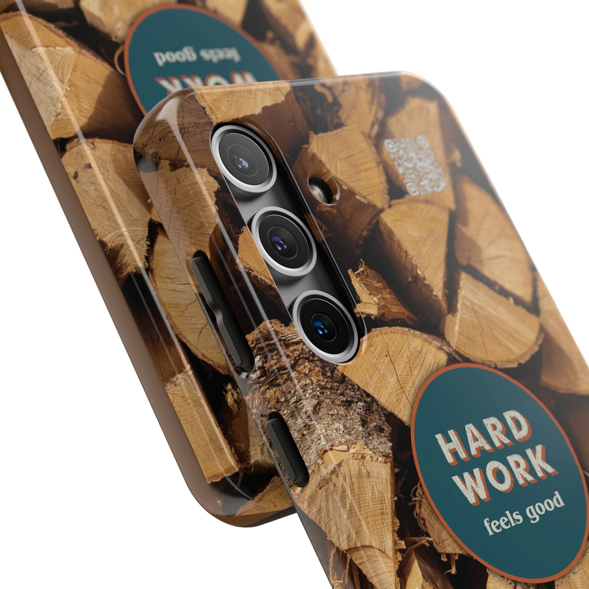 Split, stacked and seasoned wood, with a simple badge that says “HARD WORK feels good.” This phone case brings that same honest, outdoorsy energy to your pocket — a glossy, protective shell that looks like a cabin-side pile of firewood and feels rugged in daily use. Drop it, set it down on rough surfaces, carry it on workdays or weekend projects; the dual-layer construction and interior rubber liner stand between your device and bumps while the raised bezel helps guard the screen. The UV-resistant glossy print keeps the woodgrain deep and rich through seasons of sun and outdoor use. It’s made for people who take pride in getting things done and want their phone to reflect that quiet, steady grit.