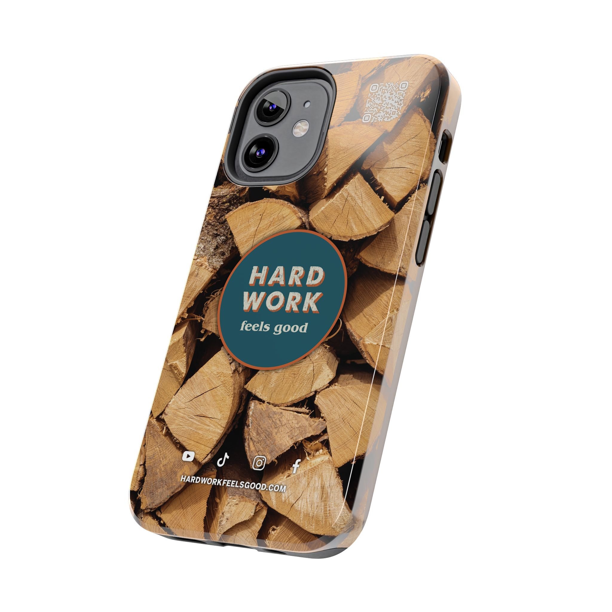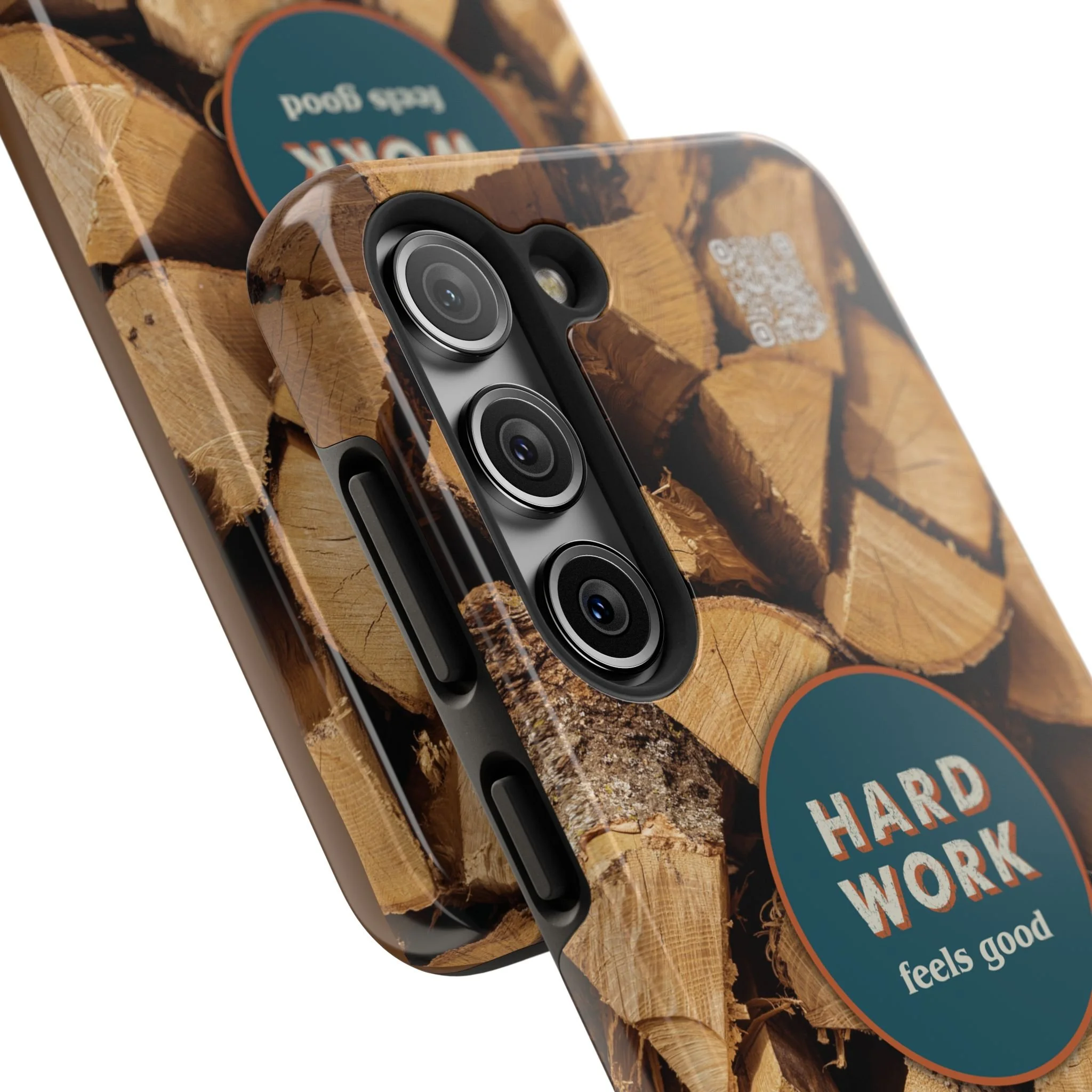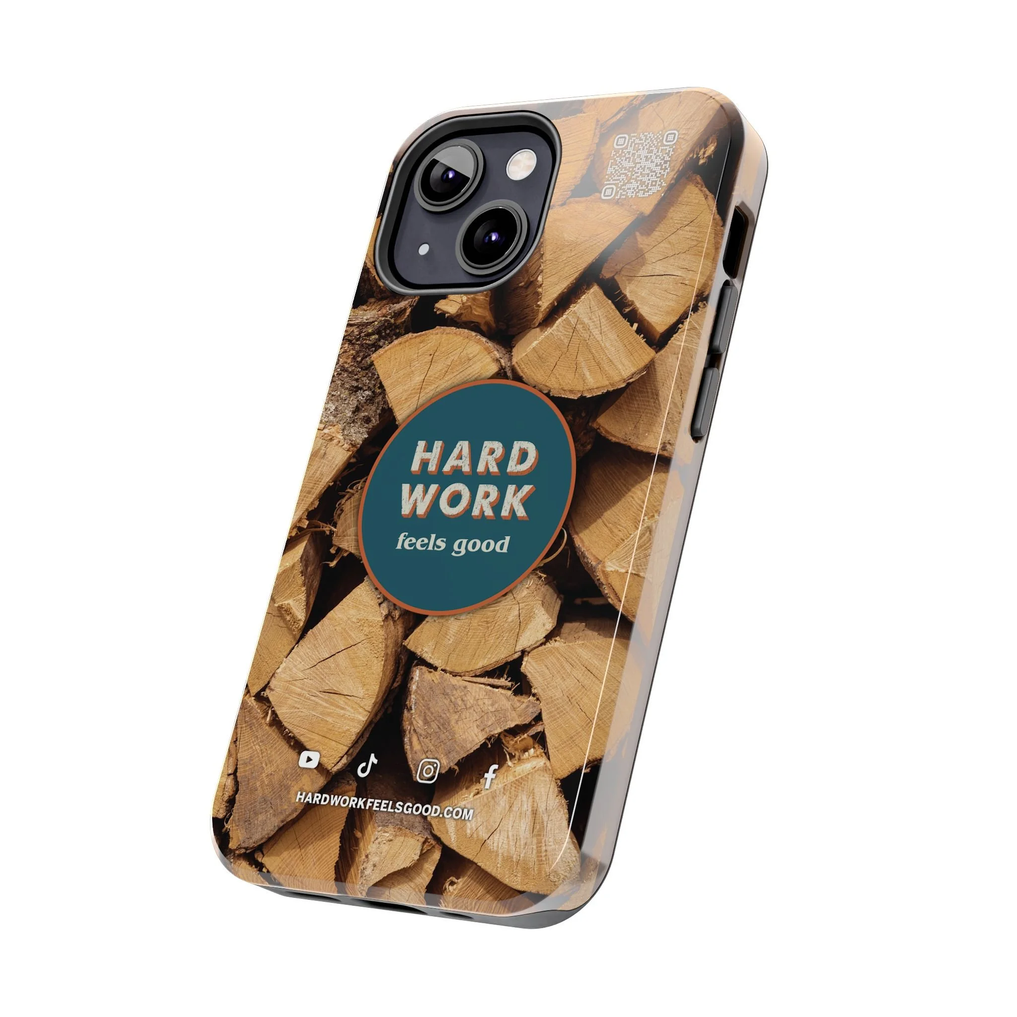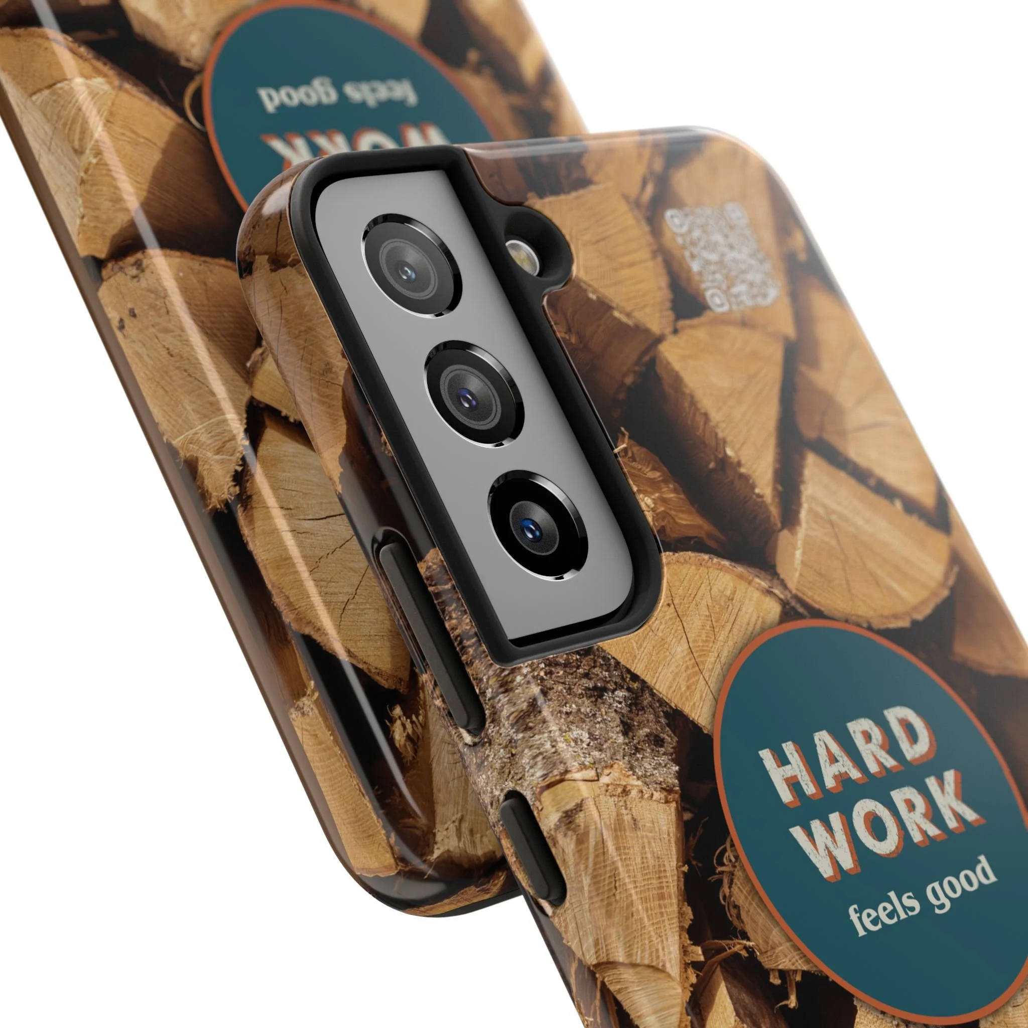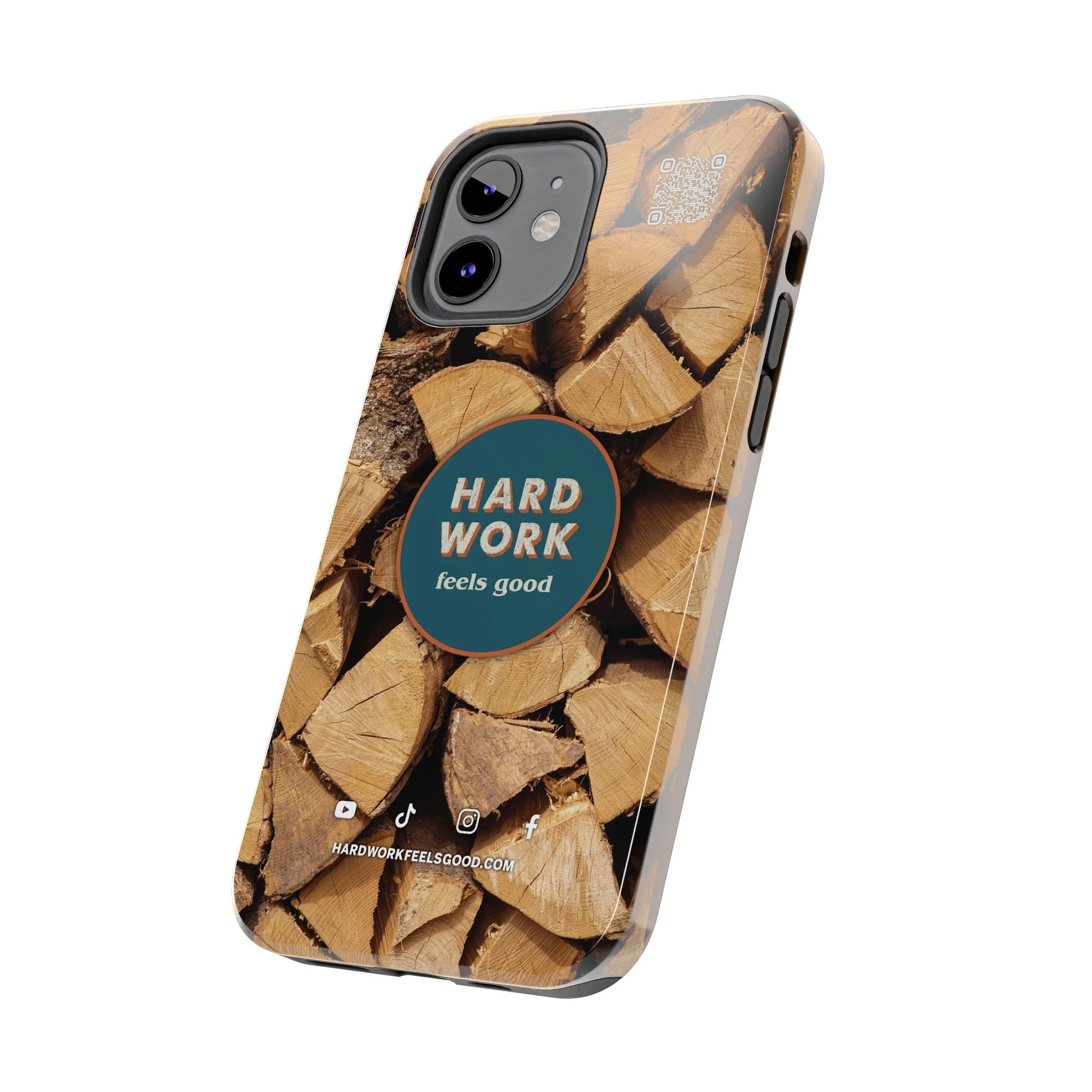 Split, stacked and seasoned wood, with a simple badge that says “HARD WORK feels good.” This phone case brings that same honest, outdoorsy energy to your pocket — a glossy, protective shell that looks like a cabin-side pile of firewood and feels rugged in daily use. Drop it, set it down on rough surfaces, carry it on workdays or weekend projects; the dual-layer construction and interior rubber liner stand between your device and bumps while the raised bezel helps guard the screen. The UV-resistant glossy print keeps the woodgrain deep and rich through seasons of sun and outdoor use. It’s made for people who take pride in getting things done and want their phone to reflect that quiet, steady grit.